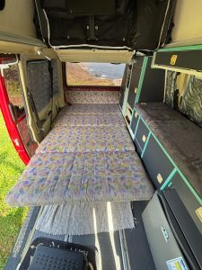 Se vende Volkswagen T4 con equipamiento camper original REIMO. Una furgoneta clásica, rutera y perfecta para disfrutar desde el primer día, con el gran plus de tener techo alto rígido, lo que da una habitabilidad interior increíble.
